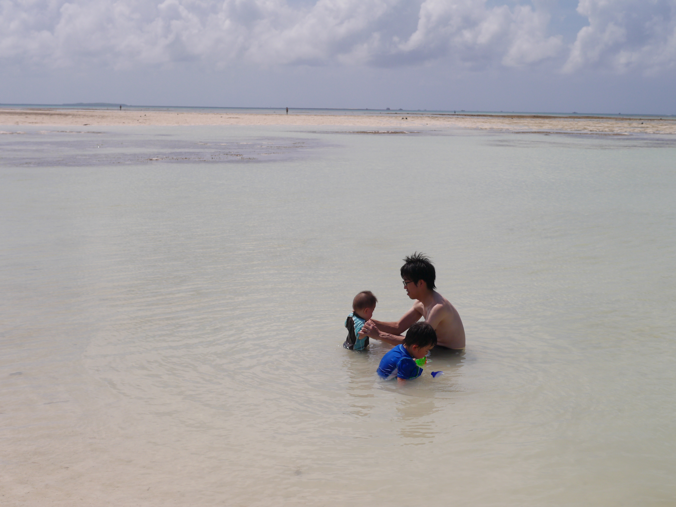 潮が引いている時間帯だったので、沖まで歩いても浅瀬が広がっていた。